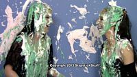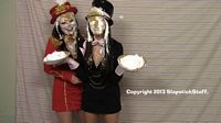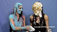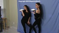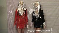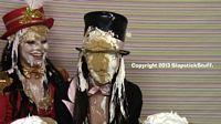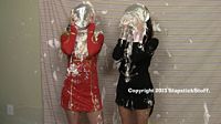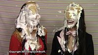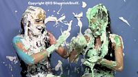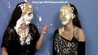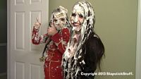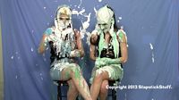 SlapstickStuff is proud to welcome two pie newbies: Alicia & Riley! Best friends and real-life roommates, they are your quinessential "girls next door," and this entire shoot definitely had the feel of an "ol' school" SlapstickStuff shoot... No dental-floss outfits, no plastic surgery. Just two cuties having a blast getting pied and slimed... and laughing WAY more than almost any models before or since! Scenes 1 & 2 have a combo of real and SC pies, plus the girls have fun nailing each other! Scene 3 is slime-intensive and boy, does Riley enjoy seeing her roomie get slimed! Also, please note: NO water in these clips for those who prefer that. Enjoy!
