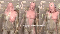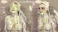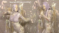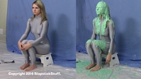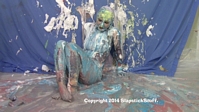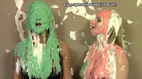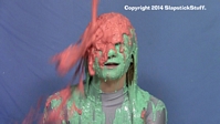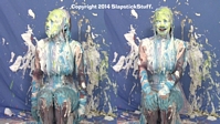 fashion, then slimed, pied, and pied some more! She rolls around in the mess,