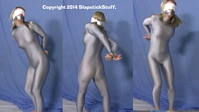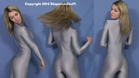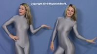 And finally, Scene 3: Shelly in a skintight catsuit, getting tied up in goofy