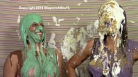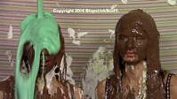 tied and pied, slimed and pied, and... Chocolate sauced and pied?!