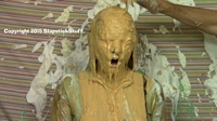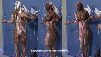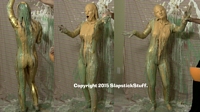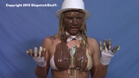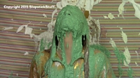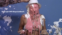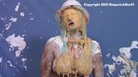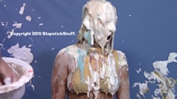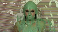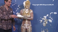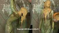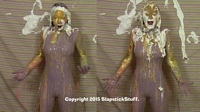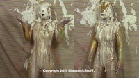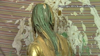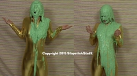 super-sexy gold catsuit! Now watch as we cover her with FIVE buckets of slime