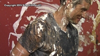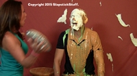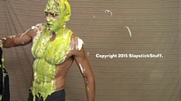 had enough of his sexist remarks and decides to strip, slime & pie him!