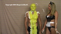 teaming up for the first time to strip, slime, and pie the guy.