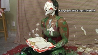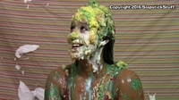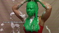 really improvise even under the mess! She goes 4 full minutes covered in slime