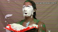 falls into cake and chocolate pudding, pie barrages, and "cake lifts"