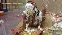repeatedly into the cake (before getting pied and chocolate slimed!). Definitely