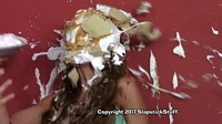 on her head, does a floor face plant into a third cake, and triggers