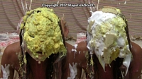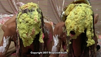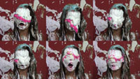 cake, "accidentally" pies herself (three times), dumps a bowl of slime