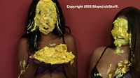 Yezzica slam herself!) and wind up both getting caked by the same giant sheet