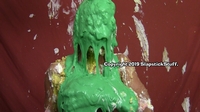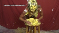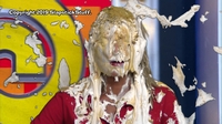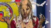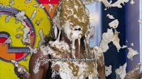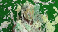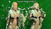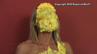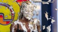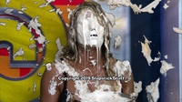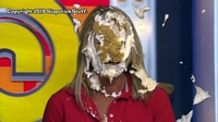 more precisely: Shauna cakes herself with two sheet cakes, does pratfalls into