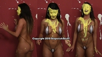 But that's not all! Taylor also pays a visit to the SlapstickStuff Spa and does the messiest version of that one too! From tons of falling pies to three cake facials to an epic triple slime closer, she gets the "full treatment" and then some! And if you were wondering how we convinced Taylor to agree to all this ridiculousness.... Behold a double shot of our girl in both these outfits, completely destroying the producer who put her up to this. Like we said: Respect the flex!