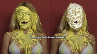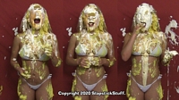 Our tiny blonde bombshell is back! Riley is that rare mix of talent: Curves (and bikinis) for days, and eager to take (and consume) as many pies and cakes as we can throw at her! If you liked SS219, you'll love her second volume, with even more mess and more instances of Riley practically begging to get caked--or pied--over and over. I mean, she cake dives in a Wonder Woman bikini. What more do you want from a girl?!?
