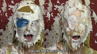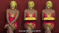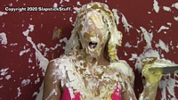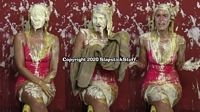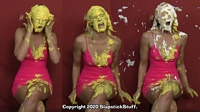 How did a girl this classy wind up shooting for us? Maybe you should ask Scarlet! This gorgeous model plays up her "all American" good looks in two epic scenes filled with fun and mess! In Scene One, she's our "Miss American Pie" spokesmodel... as things go (predictably) wrong. In Scene Two, she's a snooty actress getting her comeuppance in the world's messiest audition. (And in Scene Three, she wrecks the producer for a bit....)