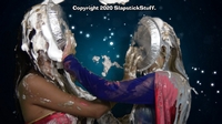 Two of our most epic Breana scenes... together in one volume! In Scene One, Bre returns to our favorite rigged gameshow, "It's Not Fair," and her cake diving antics from SS179! But this time, the bikini is smaller, the scene is longer, and the challenges are so much messier! Breana has to dive into two different cakes... not to mention an entire bucket of chocolate! WOW! And as always, SlapstickStuff's favorite model goes above and beyond: Bre winds up dousing her entire body in chocolate... and her epic self-caking might be the (three) greatest cakings you've ever seen. (I don't say this lightly, either... We've done more than 200 cakings so far, with Bre doing 50 of those herself, and this is still her finest work.)