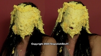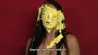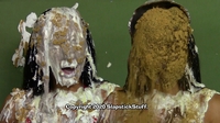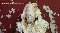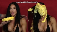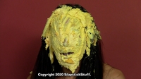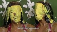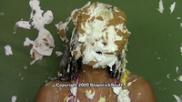 "WOW! You outdid yourself with messing her up in Scene 2. Man did she get DESTROYED!!! It started off great with the sheet cake to her face, coverage turned out BEAUTIFULLY! All of the thrown pies to her face were on target, the cake batter poured on her head left her totally submerged, my favorite pie-ing in the scene was when she went 'no no no no no' before the hit, that was one of those pies that came out great and her defeated reaction shaking her head and leaving it on her face made it that much better! You wasn't lying when you said her "you got me" reactions were great.