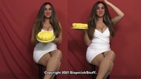 Julie is busting out all over! One of our most enthusiastic first-timers has a blast at her first SlapstickStuff shoot... whether it's the semi-improv and real-life reactions in Scene 1, or the conceited actress she plays in Scene 2, or the horrible customer getting her "just desserts" in Scene 3. (Even covered in two pounds of pie, cake, and slime, Julie never breaks character!) If you're looking for an amazing attitude and genuine acting chops, make sure to check out all three of Julie's brand-new scenes!