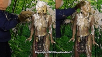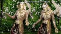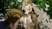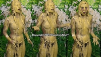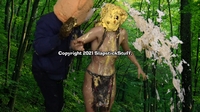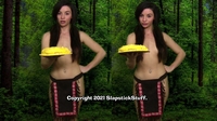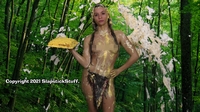Scene One finds Jasmine espousing her "serious" credentials while taking arguably the best first hits of any first-time model. (Seriously, those first 3 pies were damn near perfect!) She also throws in some amazing (and uncoached) body language into the skit as well! But that's just a prelude to Scene Two, pitting man against nature.... or, in this case, a topless "nature expert" against the elusive "Bear-Man." Jasmine absolutely knocked this one out of the park: line delivery, reactions, and an unknown knack for pratfall-style humor! The final product turned out to be one of the producer's all-time favorite scenes (not that you necessarily need to trust his judgment) and you can buy it in multiple versions, from the pure edit to the "RAW Complete" with everything. And yes, Jasmine is already eager to return... Can't wait to see what we cook up next!