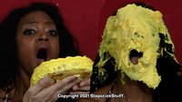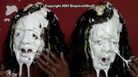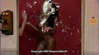 The best-selling Black model in SlapstickStuff history finally returns... and damn was this worth the wait! Candi wears what can technically be called a bikini, although it basically covers nothing... and she's definitely bringing the sexy even before the mess starts coming! Speaking of: If you want near-perfect coverage across the board, this is your scene. Absolutely amazing initial caking, great real pie hits, and then (maybe?) the best marshmallow fluffing we've ever done? Candi is absolutely covered, the wiping does nothing (as she discovers), and then she's drilled with even more pies and a back-and-forth of thick chocolate slime, the infamous white slime, and chocolate again! (Seriously, the aesthetics in this one...) By the end, she couldn't even see to get to the showers... but she was still laughing hysterically! (And doing the Wobble??) Can you tell this is a producer favorite?? If you appreciate a smart, funny model with an amazing body, before and after the mess.... You need this one!