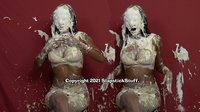 After countless scenes over five years, with tons of ridiculous outfits and messy pies and more cakings than any model ever, Breana finally ends her SlapstickStuff career. And she does it in appropriate fashion: displaying a lot of skin and even more attitude before getting completely covered in pies, slime, and cakes! Scene One has Bre in full "mean model" mode, thanks to a bikini that won't stay put.... and a script that requires her to fall face first into cakes or get nailed with slime and flying pies! And in Scene Two, she returns to It's Not Fair for the last time.... where she's forced to "Take The Cake" over and over, in between the pies! It's a rare Breana lingerine scene with some of her best-ever cakings (which is really saying something) and some awesome shots for you tights & pantyhose fans!