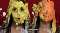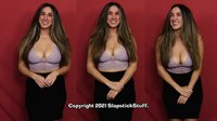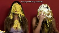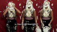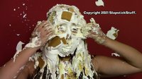One of our most adorable and down-to-earth models in recent years returns for a second SlapstickStuff experience! Julie is absolutely charming as the long-suffering kids' show host who suffers tons of messy indignities in Scene One's "Messy Mother Goose," then she tests her "pie knowledge" in the loosely-scripted Scene Two. If you like excellent acting, perfect reactions, and plenty of cleavage (ahem), Julie's your girl!!