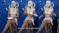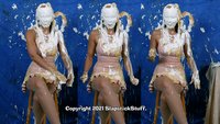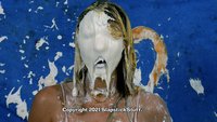 In 2020, Scarlet shot an "Ask Me Anything" video where she talked about her messy experiences... while staying 100% clean. (She also said "I don't know" quite a bit, as many of you noticed... and complained about...) During that same year, she also shot a super-hot "teaser" video for another site.... wearing this exact outfit... and once again, staying 100% clean. SO. We decided to right a few wrongs with this scene.... while also joking about how much messy production has changed with the rise of Instagram and "virtual" videos. (Yes, I'm aware this is the video equivalent of "Stay off my lawn!") If you know Scarlet's background and her work for other messy sites, you'll catch a LOT more of the jokes. But even if you don't, you can still enjoy Scarlet doing some of her best acting ever in a 100% solo context--no "Rich voice" anywhere in the edit!--while still getting destroyed with 13 pies, a 30-second green sliming, and three cakes. (She also gave off strong Toshia vibes in this one, which is obviously a huge compliment...) Maybe it was being stuck inside for COVID (again), but this was definitely Scarlet's most playful and downright fun video of anything we've shot.... So definitely check the RAW footage because there's a TON of stuff we had to leave on the cutting room floor!