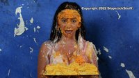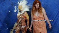 To put it mildly: This shoot took some effort! Between the length of the script, the complexity of the setups, and the many (MANY) various gags, we wound up shooting for over two hours for this single scene. (You can hear me joke that the script was basically long enough for three scenes, and that Jasmine deserved hazard pay by the end. Both were true.) If you get the RAW footage, you'll get a crash course in exactly what goes into making a scene of this size. (You can also get the "Bonus" footage for free, which is basically the first 30 minutes of each camera before any mess starts, just to give you an idea of the scale involved.) You'll also hear me get.... a little frustrated? That said, I think the end result--specifically, the final 23-minute clip that took almost a week to edit--is absolutely worth it. I tried really hard to recreate my sponsor's vision, and despite our meager budget, I think I mostly succeeded?