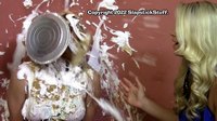 Well, as it turns out, a lot of you folks now really want to see "inequality" skits.... and we just happened to have an unreleased one from 2014 in the vault! And since my editing skills have improved over the years, this one was actually completed in a reasonable length of time... and looks pretty sharp to boot! It also features Shelly as you know and love her: Our loveable "girl next door" who also happens to play the victim role to perfection. Her attempts at amateur ghost hunting result in all sorts of humiliating experiences, including: Handcuffed, blindfolded, gagged, "bucketed," marshallow pied, pie barraged, chocolate "oil" slime, white "yogurt" slime, more pies, more slime, and a self-gunging! And Serena? Well, she gets to look cute in a cop's outfit... and accidentally trigger all the mess onto poor Shelly. (Oh, and I guess she got a leg cramp from squatting in heels for half an hour. Poor Serena!)