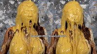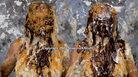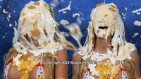 Those who sponsored this shoot when it happened already know that Elly raised her rates quite a bit since our last shoot, but I gotta say: The level of commitment was absolutely worth the extra bucks! She's definitely become one of our "up for anything" models where the mess keeps coming and she keeps rolling with it. (We shot way more footage in Scene One because Elly kept improvising new hilarious bits, even with her entire head encased in frosting!) Whether you prefer her barely-there bikini in Scene One (complete with lots of sexy posing before and during the mess) or the silly/sexy "cow-kini" look in Scene Two that turns into a dairy advertisement gone wrong (complete with Elly coating her face in sticky "yogurt," over and over), you can't go wrong with our newest superstar!