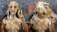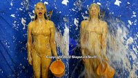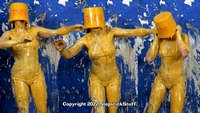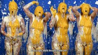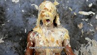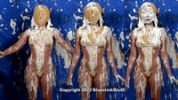 And in Scene Two, Jasmine simply wears a tiny bikini while mocking the entire idea of the SlapstickStuff "stereotypical bikini skit." What kind of karmic comeuppance could possibly result? Hmmm.... At least we got some "cultured" comedy out of this one! (And by culture, we mean Jasmine falling face-fist into cakes and Glop while speaking in a British accent...) Jasmine went through the ringer again on this one and still delivered.... If you like your mess with the additional physical element of slippin' n' slidin', she is definitely your girl now!