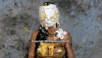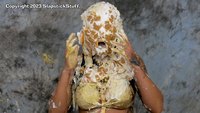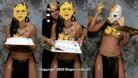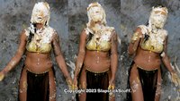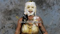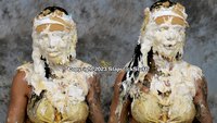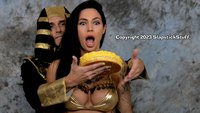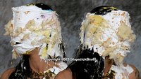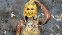 She's back! Our breakout new model of 2022 returns with two new scenes that go bigger, better, and messier! In Scene One, Kristina is a "sexy archeologist" with legs for days and an ego to match. How will she fare when the ancient Egyptian pharoahs enact revenge for invading their sacred tombs? ...Poorly. Some of our greatest cake smashes ever, with Kristina's whole head encased in frosting at one point! (This is a woman who can laugh and joke and act for 5 minutes with a ton of cake on her face... So yes, we love her!) Great "pie stumbling" too, and yes she even swan dives into the Bowl of Glop. Repeatedly!