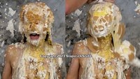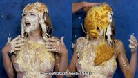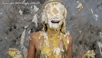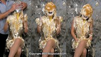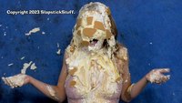 Have we ever had a cuter model? Possibly... But not for a while! Meet Eliza, five feet of feisty fun with amazing strawberry blonde hair, an all-natural bod, and a smile ten miles wide. Also, did we mention she's an absolute natural at taking pies? Yep, Eliza shot some short one-off messy clips before joining with us, but this was her first time doing longer, scripted scenes with way more mess. (So, the SlapstickStuff Treatment.) To say she had a blast doesn't even begin to cover it: Over the course of Eliza's three scenes, she's cracking jokes, improvising lines, posing with her entire head immersed in pie (or cake, or slime).... and threatening to beat up the producer at least 4-5 times. If you want a model whose personality absolutely leaps off the screen, check out Eliza! She's got a whipped cream sheet cake (well, five of 'em) with your name on it!