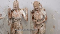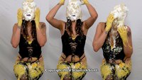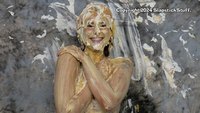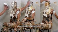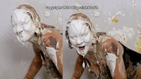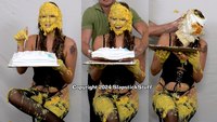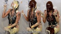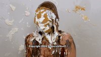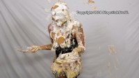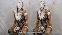 Scene Two is a bit more scripted... but just barely! Rose's fake audition involves sexy black lingerie (complete with garters and heels), more than a few cakings, epic thrown pies, a chocolate sliming "triggered" by a pull cord, and even the return of pratfalling into the Bowl of Glop! Rose is absolutely one-of-a-kind and probably had more fun getting messy than any model in recent memory, so if you like your scenes as goofy and free-wheeling as possible, definitely check her out!