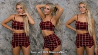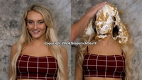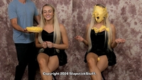 The run of amazing 2024 debuts continues! Charisma is both our first platinum blonde of the year (really!) and one of our most outgoing and ready-for-anything models in quite a while! You can tell she knows how to play to the camera: This is a girl who can pose with the best of them and shoot a mischievous wink at just the right moment. (Or just before she gets nailed with her first-ever pie in the face!)