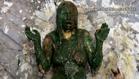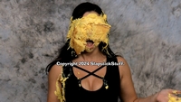 After far too much time away, our resident Sarcastic Model Jasmine returns... And she hasn't missed a beat! If anything, she was even more eager to step back into character and get super messy, and her latest role--a haughty rich woman who's both unimpressed by the Poison Pen special and wants more of it--might be her best yet. (Jasmine certainly agreed, as she asked to see the final edit of this one in particular... On camera, no less!) This might also be her sexiest role ever, from the decision to wear that dress minus underwear (um, just see pics below), to just going full nude halfway through for her first time ever. And yet, she remains the same ol' playful Jasmine as ever, dropping out of character in between lines to nibble on pie crust or throw up Star Trek knowledge. A nerdy hot girl who loves getting pied (17 times) and caked (5 times) and slimed (with both chocolate and the special Man & Wife green slime recipe)? Nope, we didn't make her up... This is really Jasmine, in her longest scene yet. Enjoy!