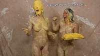 My favorite new model of 2024 (and maybe a few other years too) is back! And she brought a friend! Fresh off her epic debut, Lumen returns for an epic scene... with the assistance of her BFF Juliet, another gorgeous all-natural model who's ready to get messy! (And perhaps lose all her clothes...) The setup is that Juliet cancels her other shoots just to attend and watch Lumen get destroyed in person... Only to get a little more than she bargained for. The buildup is genuinely funny, but mostly the script is just the basic framework for these two friends to go to town... Whether that's slamming cakes and pies in each other's faces, or just cracking up the other one. (Repeatedly!)