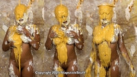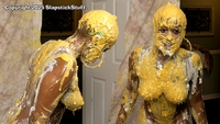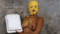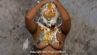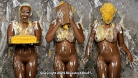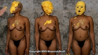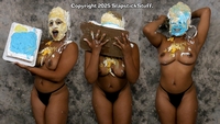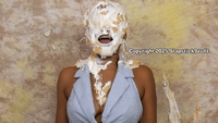 Alex, AKA Alexandra Jade, is our first Black model in years, and our first truly short-haired model since... Forever? (Does tiny Amber count?) She's also sweet, short. Southern, and sassy... And while we've had versions of that particular combo before, I'm not sure they ever came close to what Alex brings! This woman is truly one-of-a-kind, a compact force of nature with sexiness (and attitude) for days... A model who isn't gonna follow a script... And a messy newbie whose first time with the SlapstickStuff "full treatment" unfolds in real time in the best possible way. I don't need to say anymore, except that Alex is always 100% authentically herself when it comes to her reactions... Whether that's her clear "sweet tooth" surfacing as the shoot goes on, or true surprise as her entire head is consumed by cake frosting or gooey whipped cream (many many times), or even her hilarious aversion to water of any kind. There's no way I could duplicate this shoot again even if I tried, and it's also the most fun I've had with a model in quite a while! I'm thrilled that so many of you have already jumped on these scenes, and for the rest of you... Y'all might not be ready for Alex, but she's ready for you!
